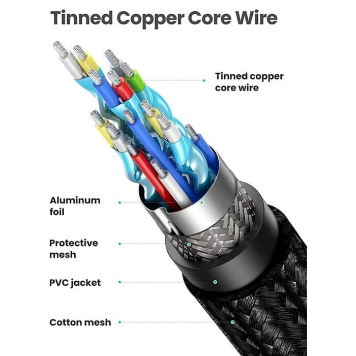 4K HDMI Cable 2.0 : UGREEN HDMI cables support Ultra HD 4K(2160p), QHD 2K(1440P), HDCP 2.2, including Audio Return Channel(ARC), Dolby Atmos, Dolby TrueHD 7.1 audio and 3D vitural effect, enjoy full HD TV sound quality while experiencing deep colors and high-resolution images, provides you the visual experience of ultra high definition.Ultra High Speed HDMI Cable with Ethernet : This HDMI to HDMI cable transfers data to speeds of up to 18Gbps bandwidth, giving you a faster and smoother screen whether watching TV, gaming or working. The 2.0 HDMI cable transfers audio, video and photos at lightning speed without waiting for buffering. Plug and play, no pre-installed drivers required.Reliable Signal Transmission : Tinned copper core wire with multiple shielding ensures efficient transmission with less data loss. Exclusive TMDS technology ensures EMI reduction, to keep stable signal transmission and minimize signal loss. Give you an immersive experience without interruption and support Mirror and Extended Mode for your different requirements.Good Durability and Flexibility : Features an ultra-durable nylon-braided jacket with a bending test of 10000+ and high quality 24K gold plated connectors, and this HDMI cables can maintain a balance of toughness and flexibility without being too stiff.Universal HDMI Cable : Compatible for all HDMI devices.Blu-ray players, PC, AV receiver, Apple TV, Roku streaming media player, PS5, PS4, Play Station, Xbox One, Ultra 4K TV(UHD TV), HDTV, laptop , Monitor, Projector and more.And we provide 3ft, 6ft, 10ft and 16ft HDMI cables for you to choose.